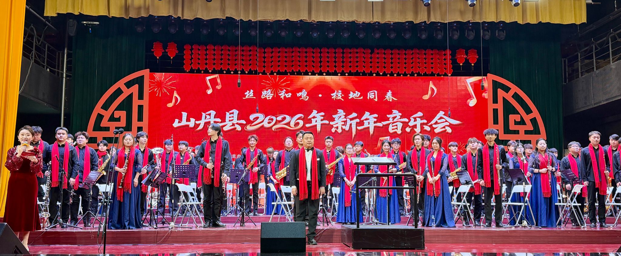 12月30日晚,河西学院祁连管乐团受邀赴山丹县,在“丝路和鸣·校地同春”2026新年音乐会上奉献管乐专场演出。河西学院党委常委、副校长唐志强、山丹县委、县政府主要领导等领导出席观看。